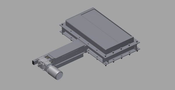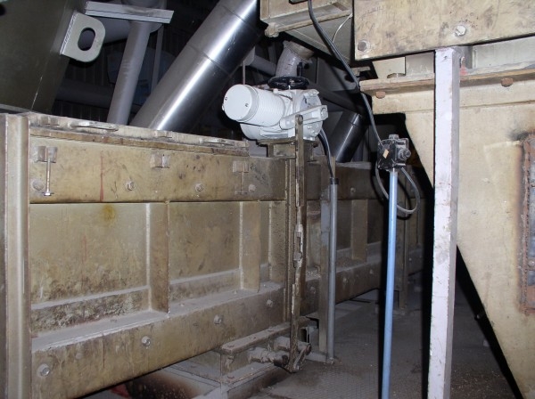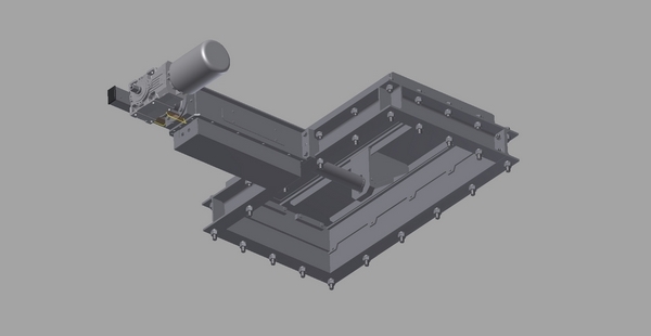 Pro elektrárnu jsme navrhli jiný mechanizmus uzavírání paliva. Dvě uzavírací lopaty s kyvným pohybem jsme nahradili lineárně se pohybujícím šíbrem z Hardoxu.