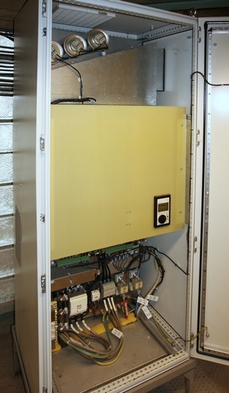 - pro regulaci zdvihu drapáku byl instalován 4-quadrantový frekvenční měnič s plně řízeným usměrňovačem, který při spouštění drapáku dodává do elektrické sítě cca 35kW elektrické energie v předepsané kvalitě (THDi do 6%)