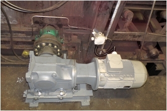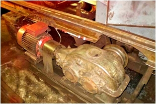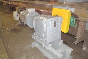 Stávající pohonné jednotky byly cca 25 let staré a navíc výkonově nedobře dimenzované (při plném zatížení pásu se výkonově pohybovaly na hranici svých možností). Výkon elektromotoru byl 11 kW. Konstrukční provedení elektromotoru i převodovky bylo v patkovém provedení. Spojení hřídelí provedeno pomocí pružných spojek. U pohonu bez použití brzdy je toto konstrukční řešení zbytečně složité.