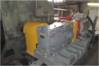 Nové pohonné jednotky již byly řešeny moderním způsobem. Byla použita kuželočelní převodovka v patkovém provedení, vstupní příruba pro montáž přírubového elektromotoru a výstupní hřídel plná s perem pro možnost spojení s hřídelí hnaného bubnu pásu pomocí pružné spojky. Volba výkonu elektromotoru 15 kW se ukázala jako velmi vhodná, kdy elektromotor při plném zatížení pásu pracuje s malou výkonovou rezervou. Popisovaným konstrukčním uspořádáním se uložení pohonné jednotky zjednodušilo, což je velkou výhodou především při řešení poruch (čas při ustavování pohonné jednotky zpět na pozici se výrazně zkrátí) – toto ocení především pracovníci údržby.