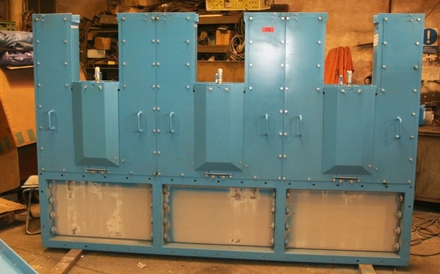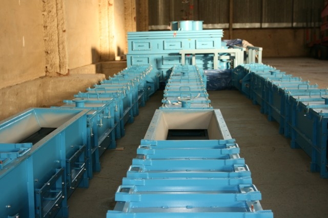 - Třídílný deskový uzávěr pod zásobníkem uhlí (bunkrem), typ DU 3x500-2800-EP