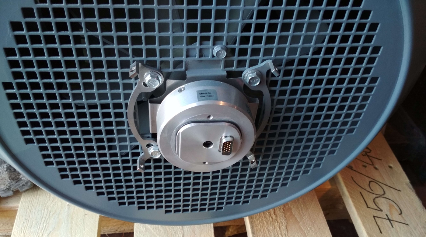 Elektromotor s výkonem 75 kW a hmotností 660 Kg je vybaven elektromagnetickou brzdou s ručním odbrzděním, vyhodnocovací jednotkou se sledováním opotřebení obložení a inkrementálním snímačem otáček na hřídeli.