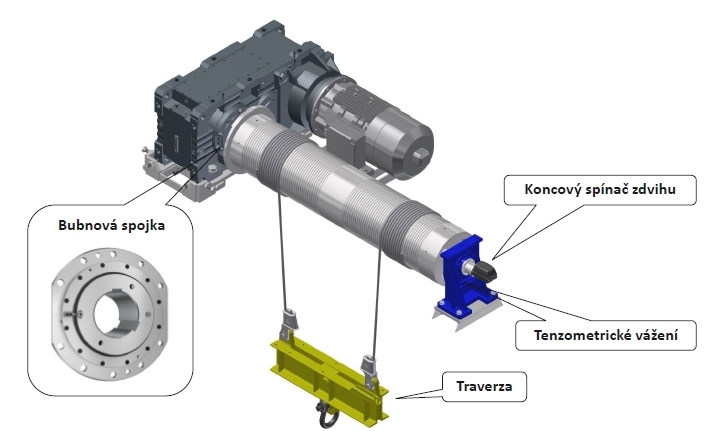 Lanový buben, traverza, horní rám kočky byly podrobené statickým výpočtům.