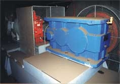 Dodávka kompletního pohonu šikmého pasu vnějšího zauhlování, výkon 132 kW. Dodávka převodovky, hydraulické rozběhové spojky a diskové brzdy.