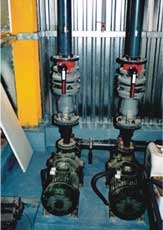 Regulace otáček čerpadel pro dávkování vody při výrobě betonu. Výkon čerpadel 11 kW.