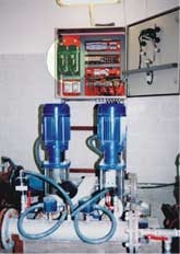 Regulace otáček jednotlivých čerpadel užitkové nebo pitné vody, případně jejich kaskády, na konstantní tlak v potrubí, konstantní hladinu ve vodojemu.