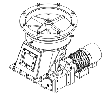Rotační podavač RKP je složený ze dvou komor, které jsou vzájemně odděleny pevnými talíři s propustí. Rotujícími lopatkami je uhelný prášek posouván po jednotlivých talířích až k jejich výpadovému otvoru. Regulace množství přepravovaného materiálu rotačním podavačem se provádí změnou otáček pomocí měniče frekvence.