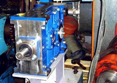 Rekonstrukce převodovky hlavního pohonu stroje pro výrobu lepenky. Dodávka na “klíč”, včetně projektové dokumentace, demontážních a montážních prací. Původní převodovka, na které došlo k poruše. Nově dodaná kuželočelní převodovka dodaná včetně nové konzoly a montáže a ustavení. Pohon zůstal původní, stejnosměrný regulovaný elektromotor o výkonu 30 kW.